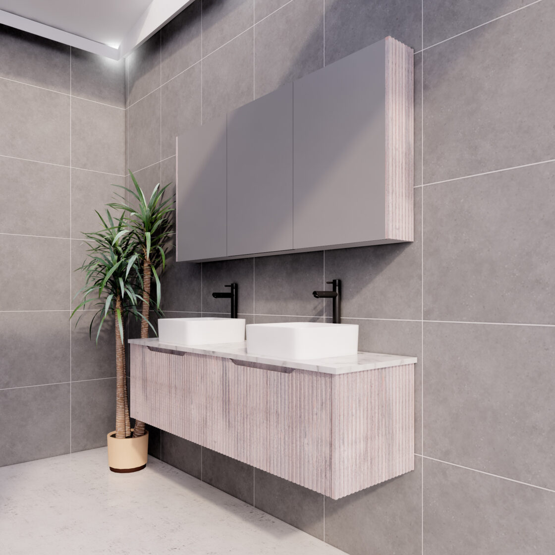 1200mm BALI White Oak Wall Hung Vanity(Double Bowl)