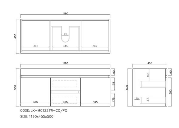 - Dimensions: 1190mm (W) x 455mm (D) x 500mm (H)