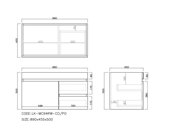 - Dimensions: 890mm (W) x 455mm (D) x 500mm (H)